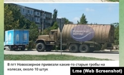 Запечатлели в поселке Новоозерное такую технику, причем десять ПМП, видимо, не случайно. Несколько лет назад один из местных жителей рассказал корреспонденту Крым.Реалии, что на территорию одной из бывших воинских частей ВСУ на берегу озера Донузлав, на северо-восточной окраине Новоозерного, российские военные свозят для хранения под открытым небом сухопутную военную технику (танки, бронетранспортеры, инженерные машины). Допустимо, что именно эти экземпляры ПМП на старом, еще советском КрАЗе, и сняли с длительного хранения в Новоозерном для нынешнего «аврального случая» на Чонгаре. Стоит отметить, что эта база хранения зафиксирована на обновленной карте милитаризации Крыма, которую создали журналисты Крым.Реалии.